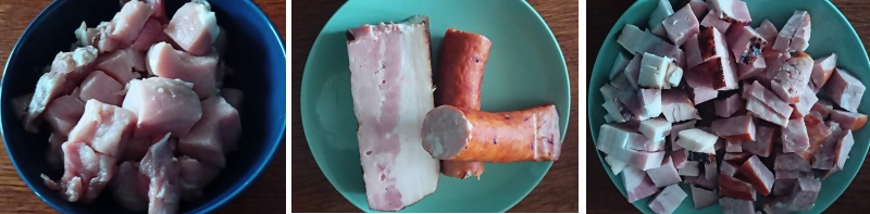 - 300 g libovější slaniny nebo tučnějšího uzeného masa