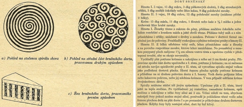 O brněnském dortu jsem věděla už jako malé děvče. Naše máti pracovala s jakousi Jarmilou. A ta Jarmila, když měla narozeniny, hostila své kolegyně domácím brněnským dortem. „Ona je Jarmila ze Znojma nebo tam někde odtamtud. A tak brněnský dort umí udělat.“ Čím je brněnský dort tak výjimečný, naše máti vysvětlovala: „Je uvnitř kostkovaný, protože se skládá.“  Při vší úctě k máti, ten místopis a popis dortu mi moc světla do problému nevnesly. Naštěstí naše máti dokázala ukázat cestu: „Tak si ho najdi někde v kuchařkách, určitě tam bude.“
