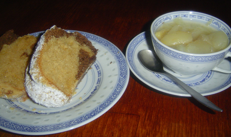 Aby děti nekřičely (jak už to umí), že je bábovka dusí, můžeme jim ji podat s čerstvým kompotem. Nebo s nějakým kompotem ze zásob – třeba s jahodovým. Četla jsem v Pohádkách z Prahy Vojtěcha Cynibulka, že bábovku s kompotem mají děti moc rády.