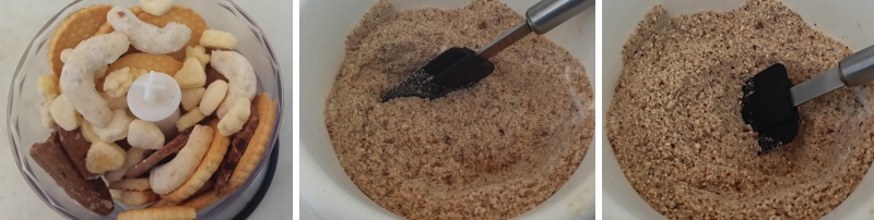 V naší domácnosti se to s vánočním cukrovím moc nepřehání, tak jsem po Třech králích „jen tak-tak“ shromáždila asi polovinu potřebného recyklovatelného pečiva (440 g). Protože nemám persiko, přihodila jsem 5 g mandlí a tři kapky potravinářské tresti „hořké mandle“. Odvážený materiál jsem přesypala do chopperu a jemně rozsekala.