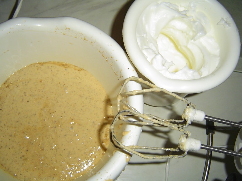 Šestý krok: Ručně, stěrkou, zamíchám do těsta bílkový sníh.