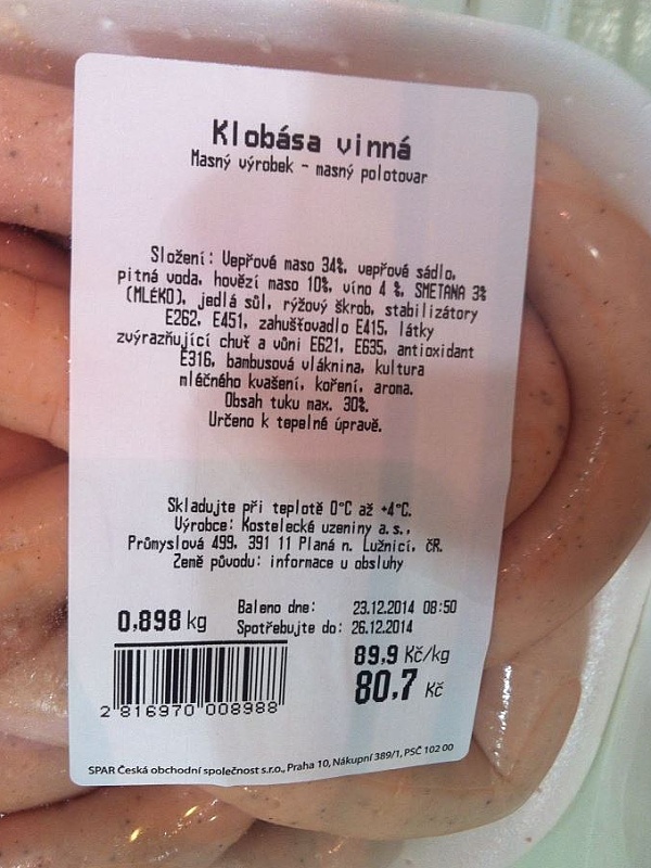 složení vinné klobásy